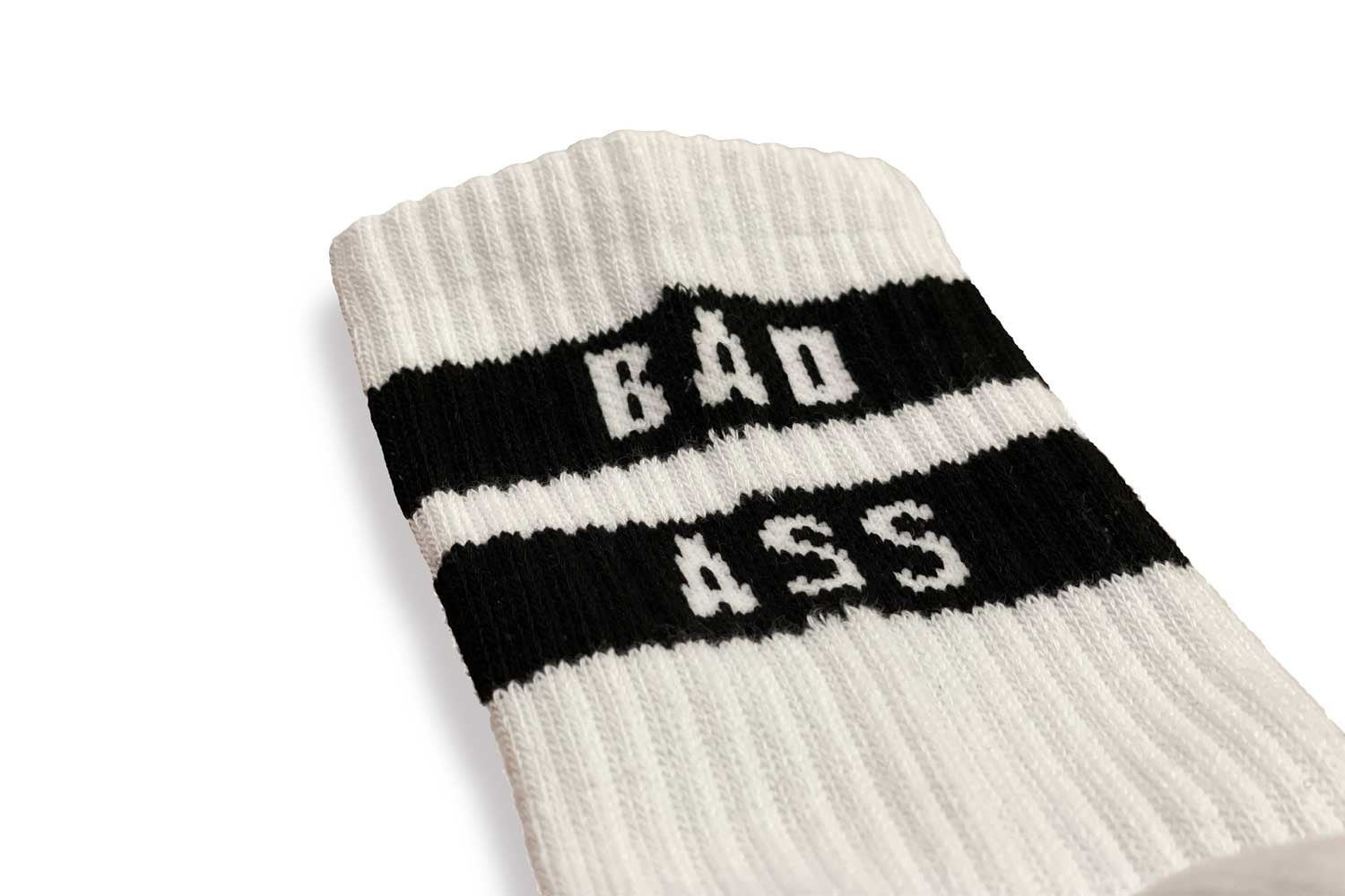 王道の2本ラインのデザインに「BAD ASS」の文字。