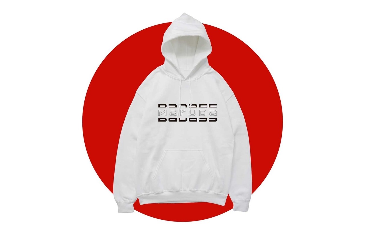 BAD ASSのロゴをスプリットさせ中央にmarudaロゴを配置。